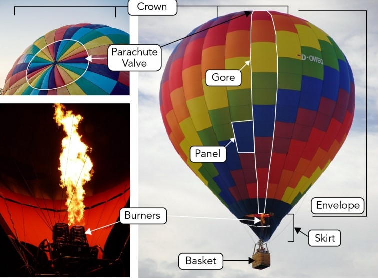 Každý horkovzdušný balon se skládá z několika částí. Nejdůležitější a nejznámější části jsou tři: