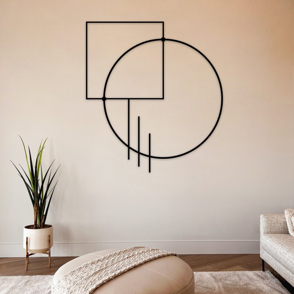 Skvělý pro obývací pokoje, kanceláře nebo moderní galerie. Lehce se tak stane centrálním prvkem stěny. Tento kovový obraz – kruh a čtverec přináší abstraktní eleganci, zaujme návštěvníky a dodá prostoru sofistikovaný a stylový nádech.