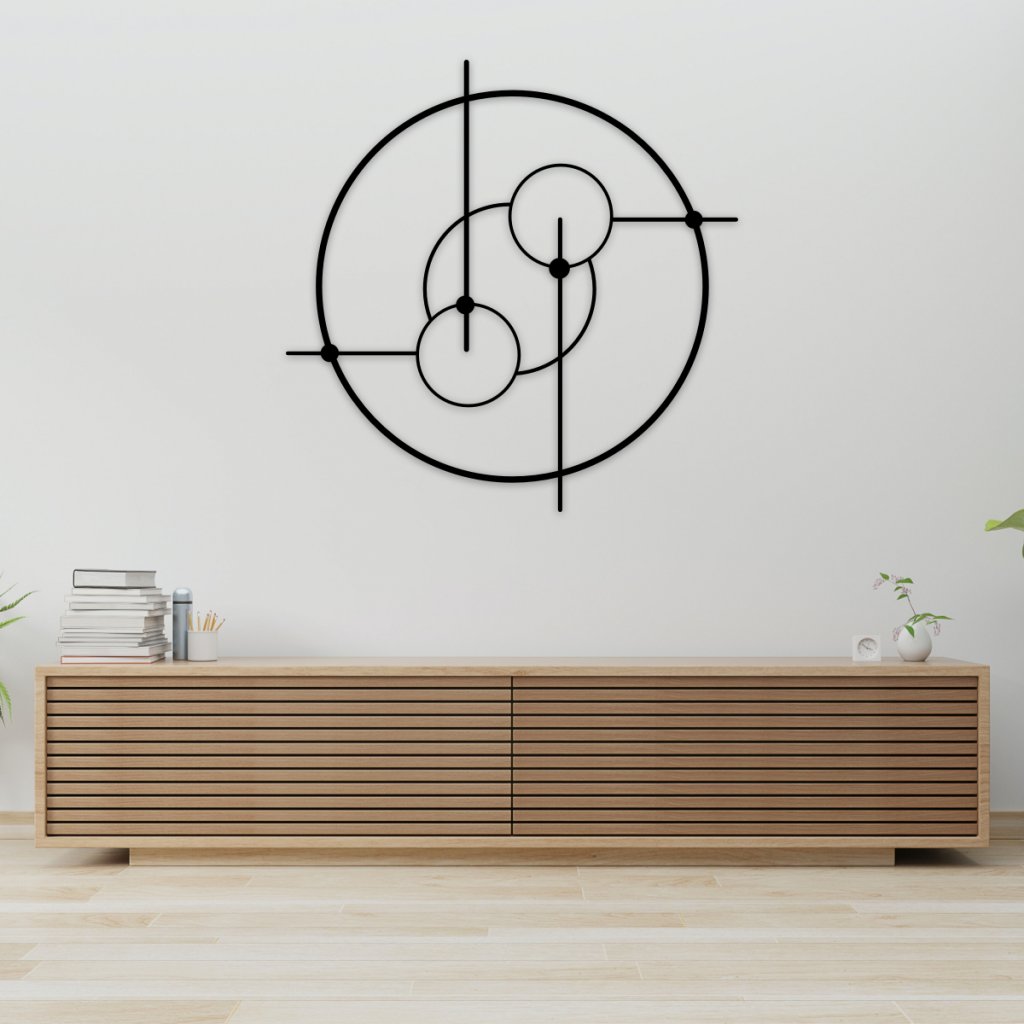 Geometrický kovový obraz - kruhy je skvělá abstraktní dekorace, která se hodí téměř vše. Obývací pokoj, pracovna, vstupní hala nebo i ložnice.