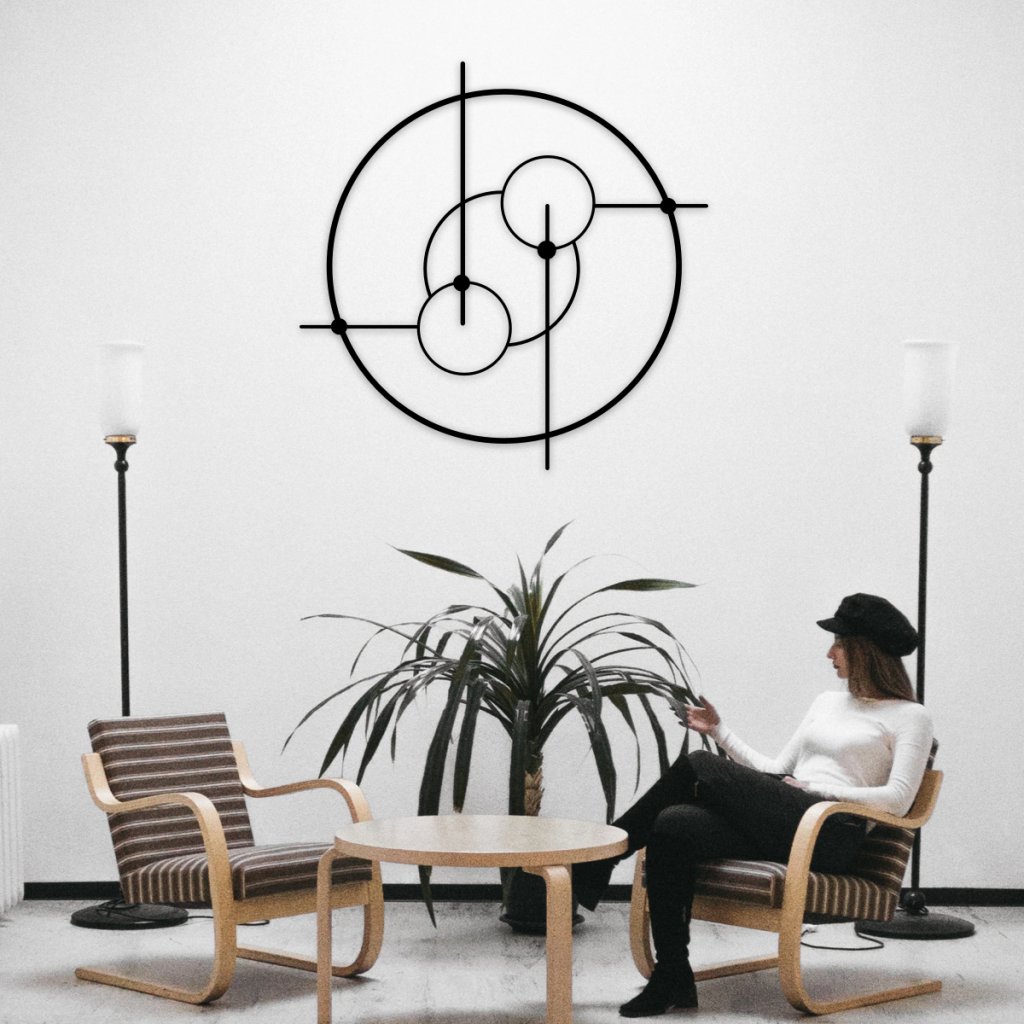Elegantní geometrický kovový obraz – kruhy kombinuje více kruhových prvků do jedné kovové dekorace. Dynamika kruhů přináší vizuální energii a moderní abstraktní vzhled, který oživí každou stěnu a interiér. (Naše dekorace se dají použít i v exteriérech např. v krytém posezení kde rádi trávíte svůj čas)