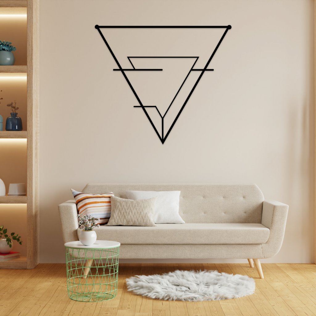 Vyroben z kvalitního kovu s precizní povrchovou úpravou práškovým lakováním. Tento obraz je velmi odolný a dlouhodobě zachovává svůj elegantní vzhled. Ostré linie trojúhelníku dodávají interiéru industriální nádech a lze jej kombinovat s dalšími kovovými dekoracemi.
