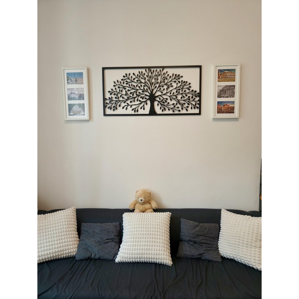 Strom života obraz jako kovový obraz na zeď je moderní alternativou ke klasickým obrazům a plakátům. Díky otevřené kovové konstrukci vytváří hloubku a pracuje se světlem, takže funguje jako dominantní dekorace na zeď v moderním interiéru.